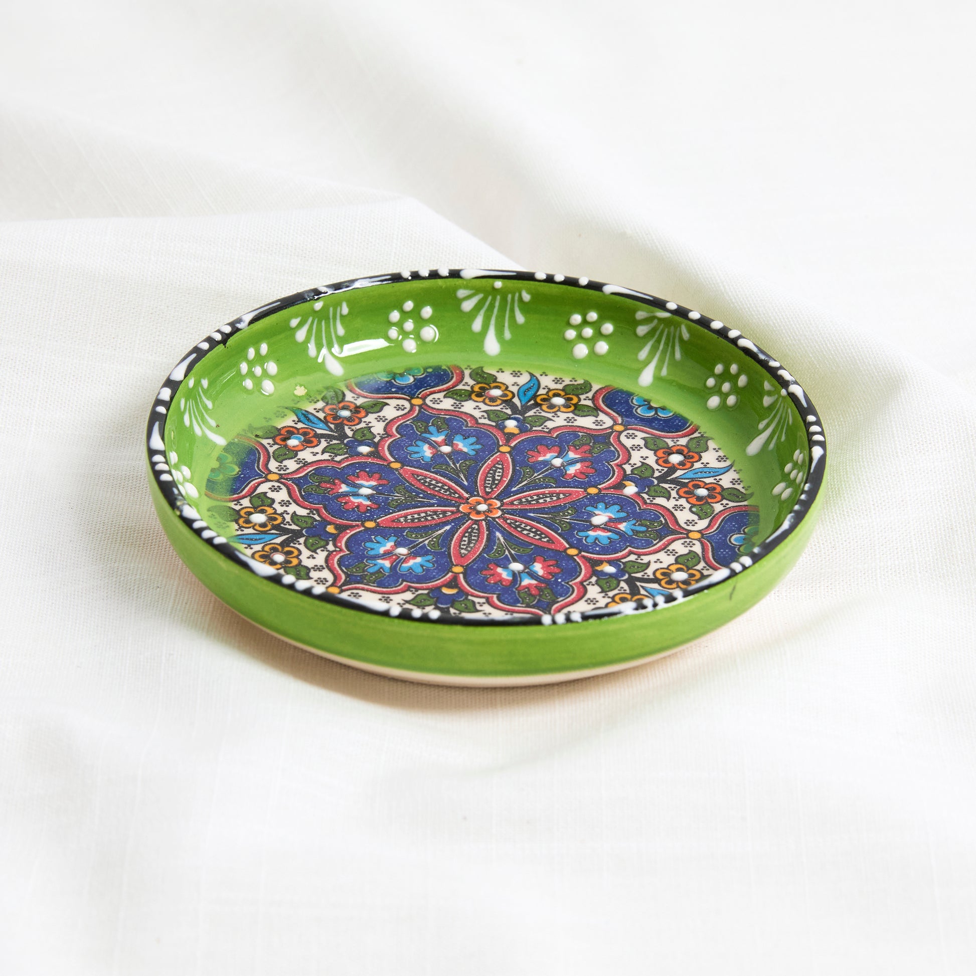 Hand-painted Ottoman style ceramic plate. Perfect for small dishes, tapas or snacks. Colourful addition to brighten up your kitchen. More colours available not displayed, blue, red, yellow, black - look at other ceramics for ideas.