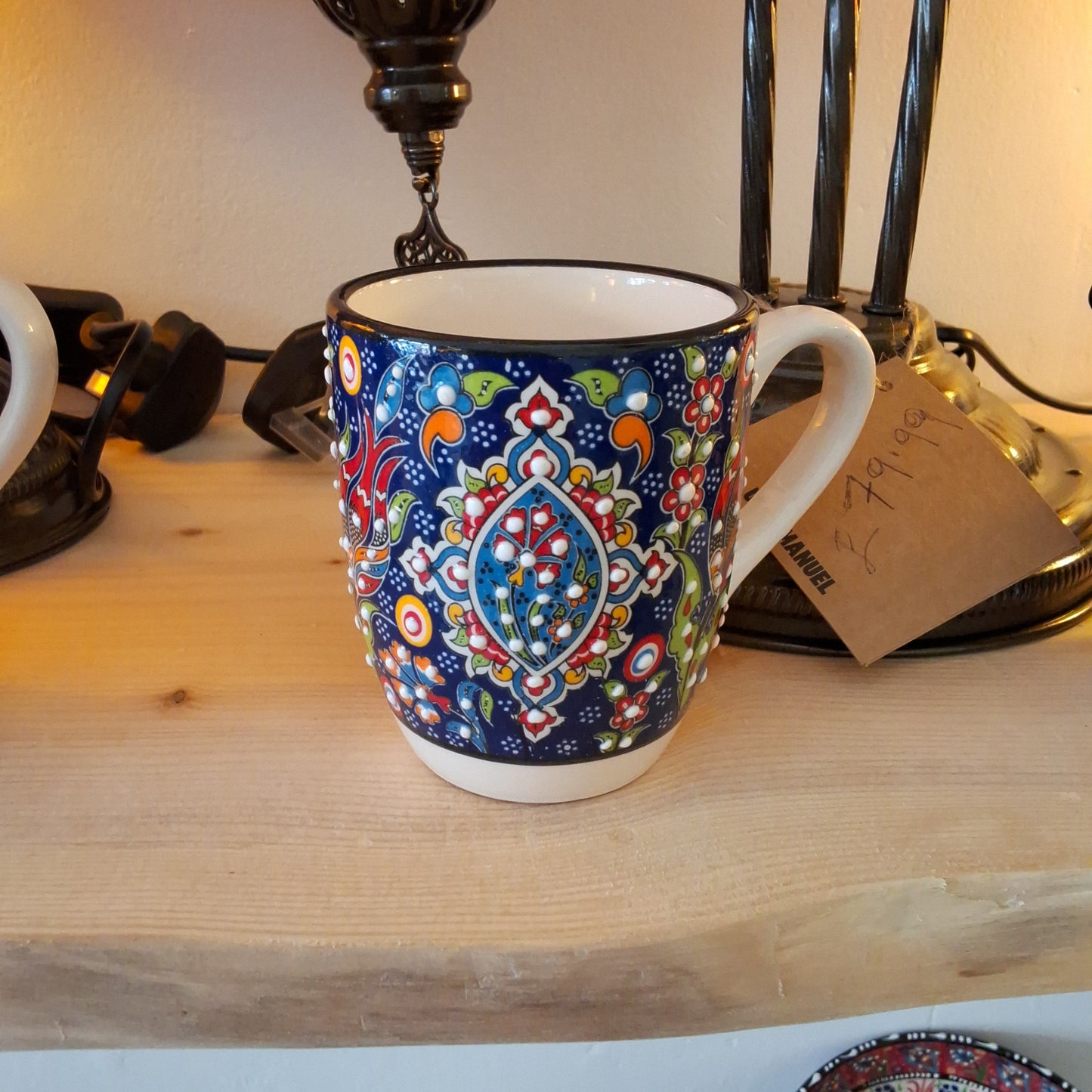 An excellent coffee mug, hand-painted with vibrant Iznik colours and patterns